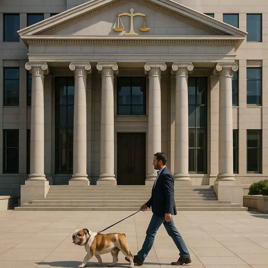 Persona y perro observando la ciudad, vínculo humano-animal en contexto social y legal